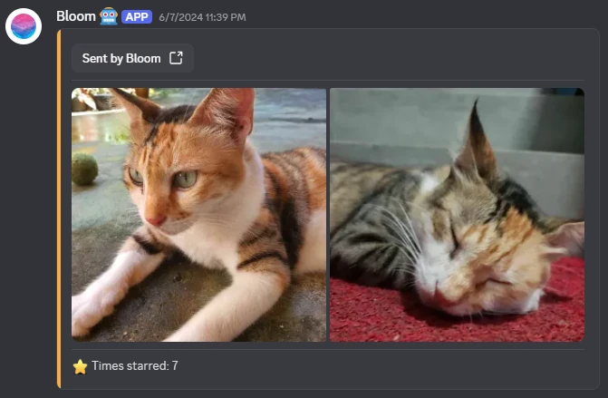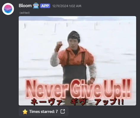 Bloom also manages the server starboard. Any post that receives four or more star reactions will be added to the #⭐starboard channel. The example below is from a time when only three stars were required, but is retained for its historical significance.